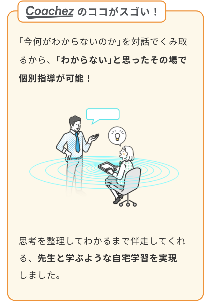 思考を整理してわかるまで伴走してくれる、先生と学ぶような自宅学習を実現しました。