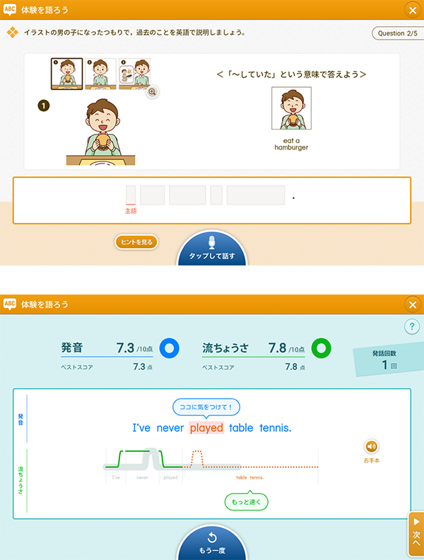 正しい発音で流暢に話せるか、最初は不安もありましたが、何回かやっていくうちに慣れることができました。自分では判断がつきづらい発音を数値で表し、繰り返すことで数値が上がっていくので、やっていて楽しかったです。