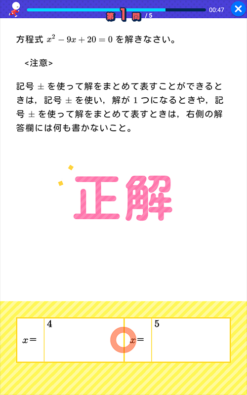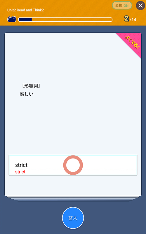 「入試対策講座」は問題がレベル別に分かれていたので、やる気がでないときには簡単な問題で基本を確認する、「今日は応用問題をいっぱい解こう!」と思ったときは難問を選ぶなど、自分のやりたいことに合わせて使い分けができたので便利でした。