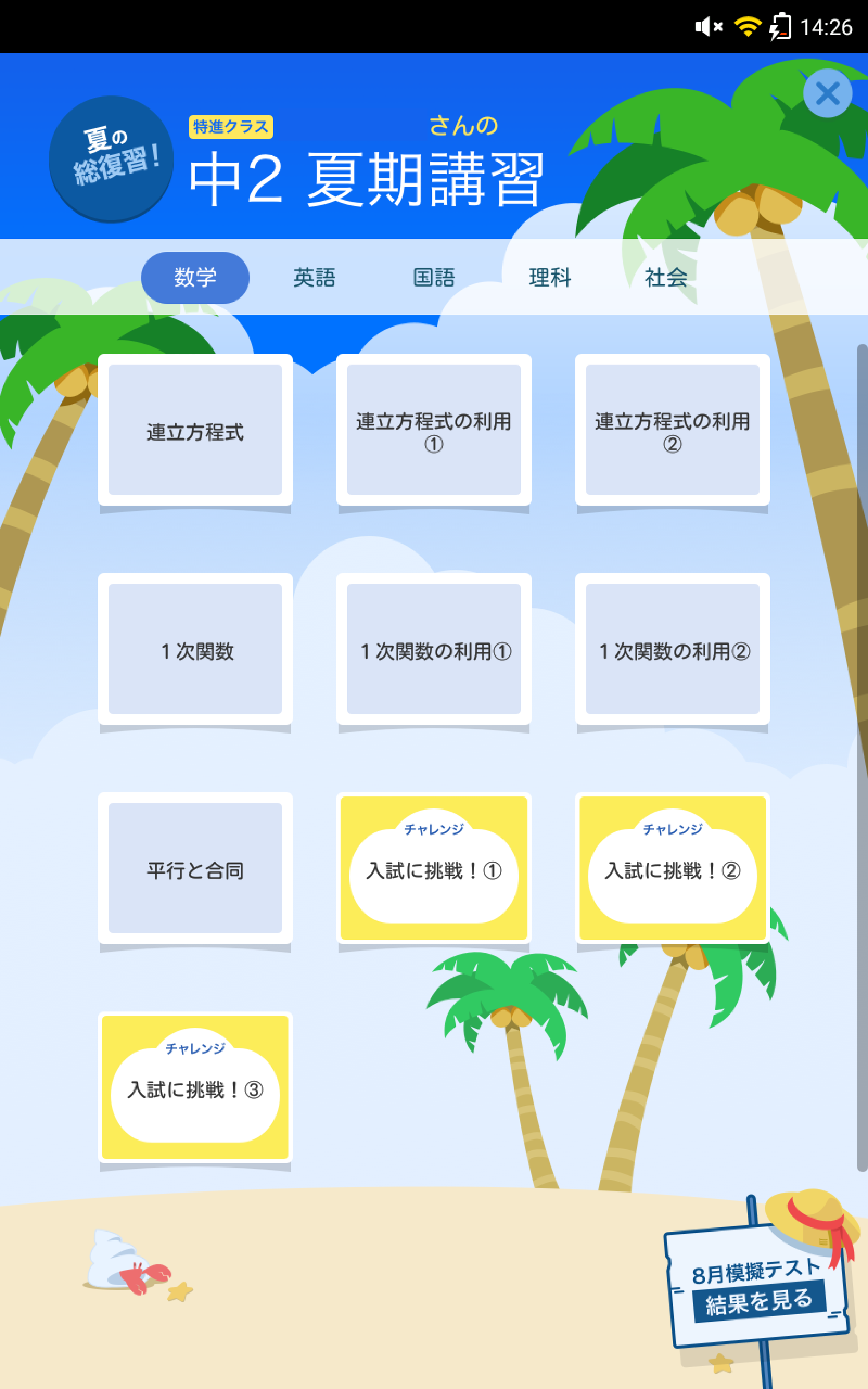 特に中学3年の夏休みは、毎日近所のおじいちゃんの家に行って、1日8時間くらい集中して勉強しました。勉強が進むにつれて、自分でも「凡ミスをしなくなった」と思いましたが、その結果、夏休み明けには成績がグンと上がっていました。スマイルゼミの「間違い直し」が役に立ったのと、夏期講習は問題数が多いので、数を多くこなしたことでいろんな問題に慣れることができたのが良かったと思います。