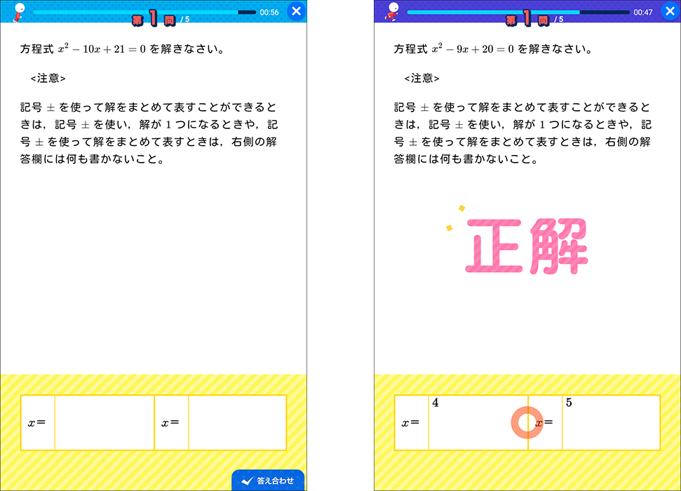 菜々子さん私は、教科によってスマイルゼミの良いところを使い分けていました。たとえば、数学は学校の授業の進み方が早かったので、スマイルゼミで復習をしました。英語や漢字を覚えるときは「暗記カード」がとても役立ちました。また理科の「映像授業」では、実験を映像で見ることができて、とてもわかりやすかったです。