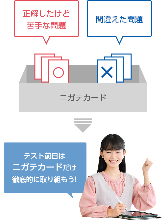 間違えてしまった問題はもちろん、苦手意識が拭えない問題などは、“ジブン専用”の「ニガテカード」として登録。