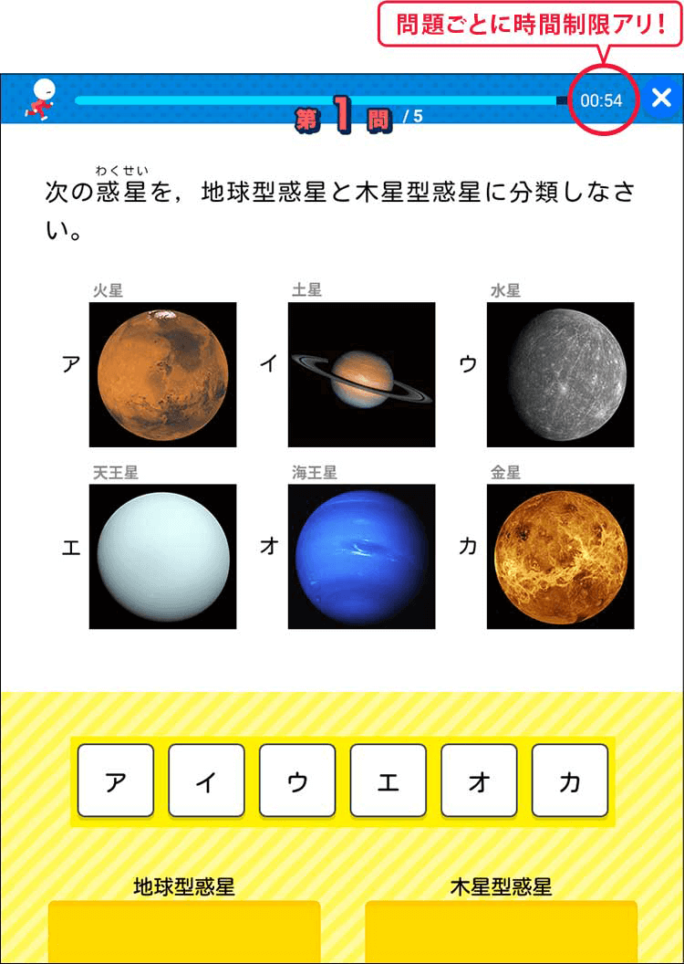 スマイルゼミは入試対策もオーダーメイド型。一人ひとりの学力レベルを単元ごとに判定し、今の実力と志望校とのレベル差を埋めていく対策問題を一人ひとりにあわせて配信。志望校合格に向けて着実に力をつけられます。