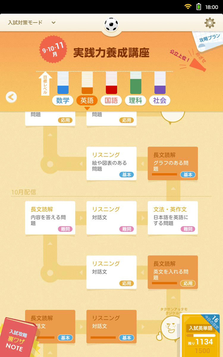 スマイルゼミは入試対策もオーダーメイド型。一人ひとりの学力レベルを単元ごとに判定し、今の実力と志望校とのレベル差を埋めていく対策問題を一人ひとりにあわせて配信。志望校合格に向けて着実に力をつけられます。