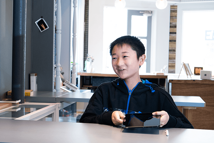 お父さま実は、他社のタブレット教材と悩んでいたんですが、体験会で実際にスマイルゼミの教材に触れた結果、こちらに決めました。他社の教材は選択式の問題ばかりだった中で、スマイルゼミは記述式の問題もあるので、応用力も身につくと思いました。