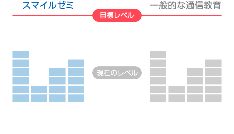 教科より細かい「単元ごと」の理解度を判定し、理解度に応じたレベルの問題を配信。対策漏れなく、目標レベルに向かって実力を引き上げます。