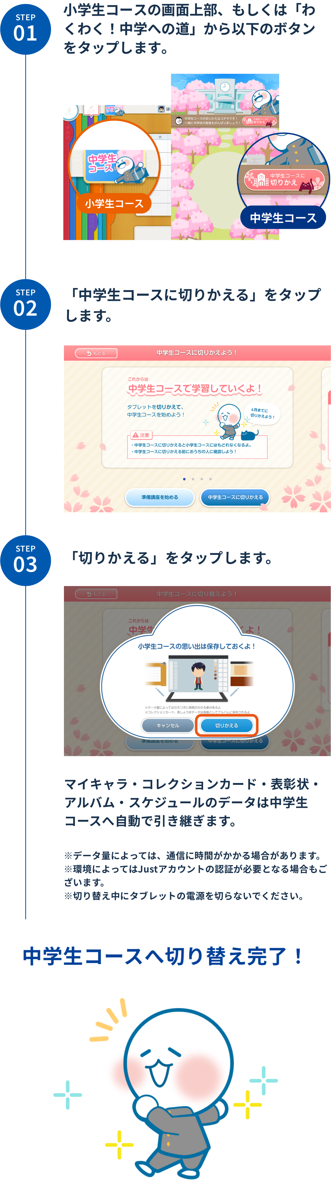 下記手順に沿って、中学生コースへの切り替えをお進めください。