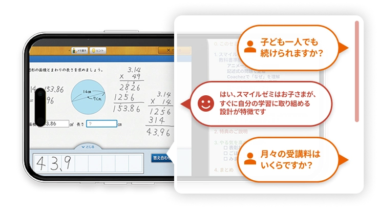 視聴時間 20分 ライブ配信 カメラマイクOFF 匿名で質問 途中参加OK ※ 視聴にはメールアドレスの入力が必要です。 動画を見ながらいつでも質問 動画視聴 チャットですぐ疑問を解消 いつでも視聴 ※内容はオンライン説明会と同じです。 コースを選んで視聴する 幼児コース 小学コース 中学コース ※ 視聴にはメールアドレスの入力が必要です。 3分で特長をご説明 紹介動画 いつでも視聴 コースを選んで視聴する 幼児コース 小学コース 中学コース 高校コース ※ 視聴にはメールアドレスの入力が必要です。