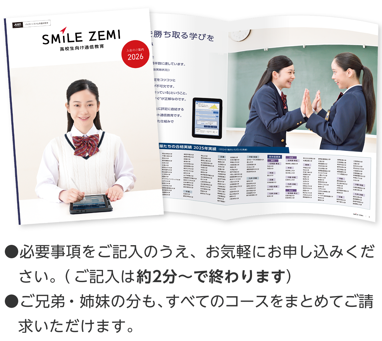 スマイルゼミの概要や会費などがわかる「入会のご案内」(冊子)を無料でお届けしています。