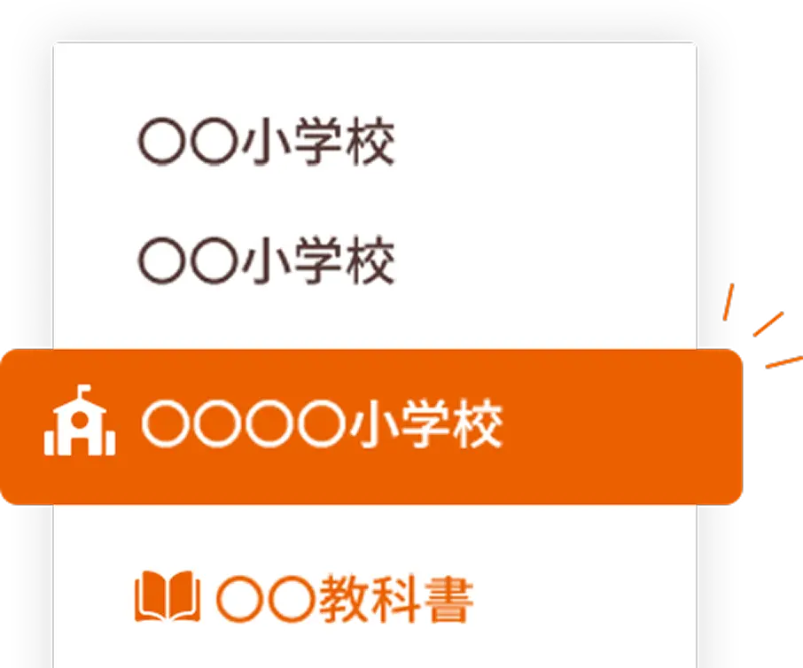 学校独自の教科書や進め方の場合は、お好みの教科書またはスマイルゼミ標準コースをお選びいただけます。