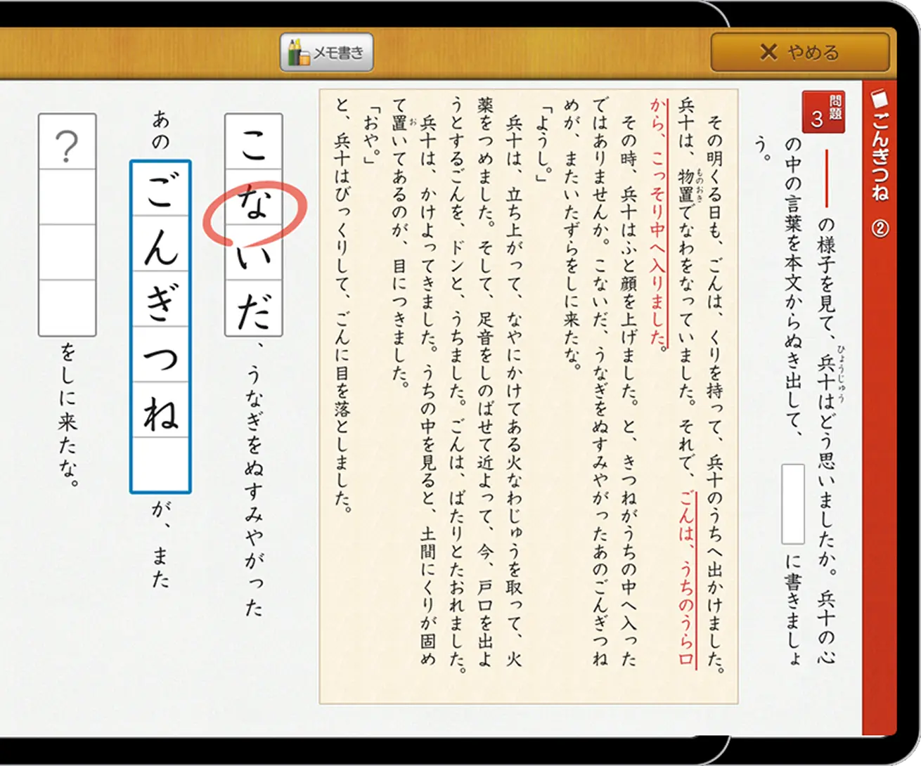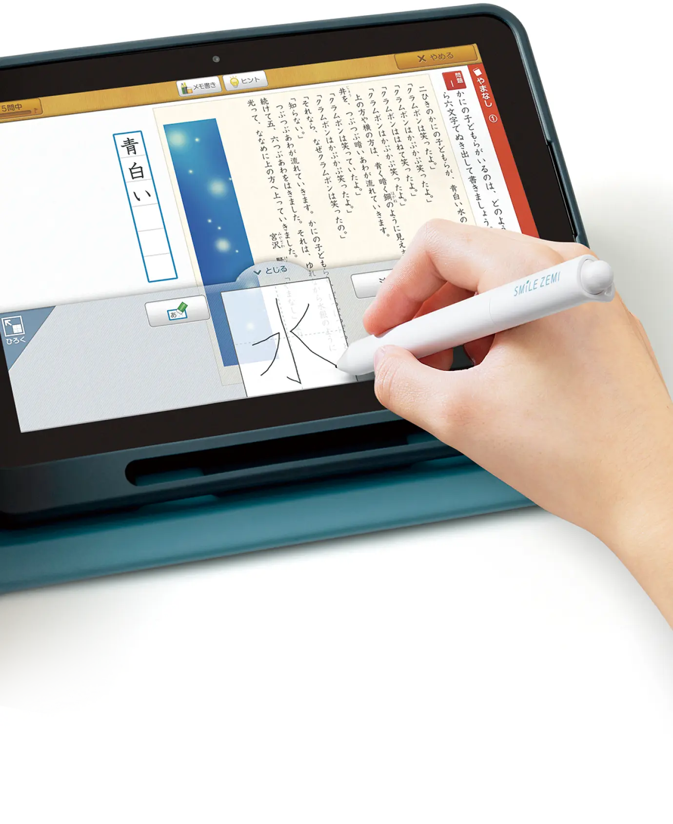 スマイルゼミでは、「聞く」「読む」「触る」「声に出す」というように体感しながら学ぶことで「は・を・へ」など基本的な助詞を学ぶことができます。