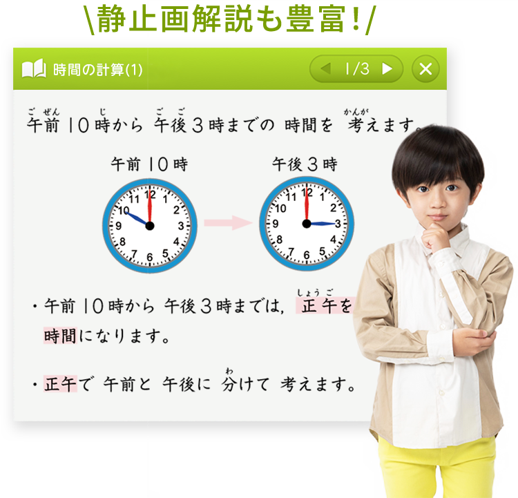 「読解力」を磨く一人でしっかり解き進められるよう、さまざまな仕組みをご用意。初めて学ぶ内容は、動画などで丁寧に解説。問題に繰り返し取り組み、正確に速く解ける力を身につけてから、次のステージに進みます。