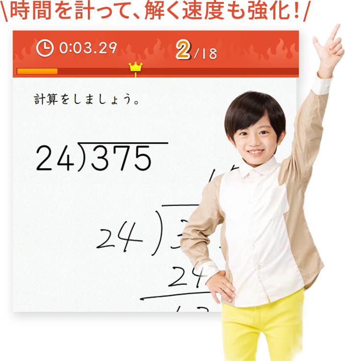お子さまの理解度に合わせて、簡単な問題から少しずつステップアップしていけるので、無理なく学習を進められます。