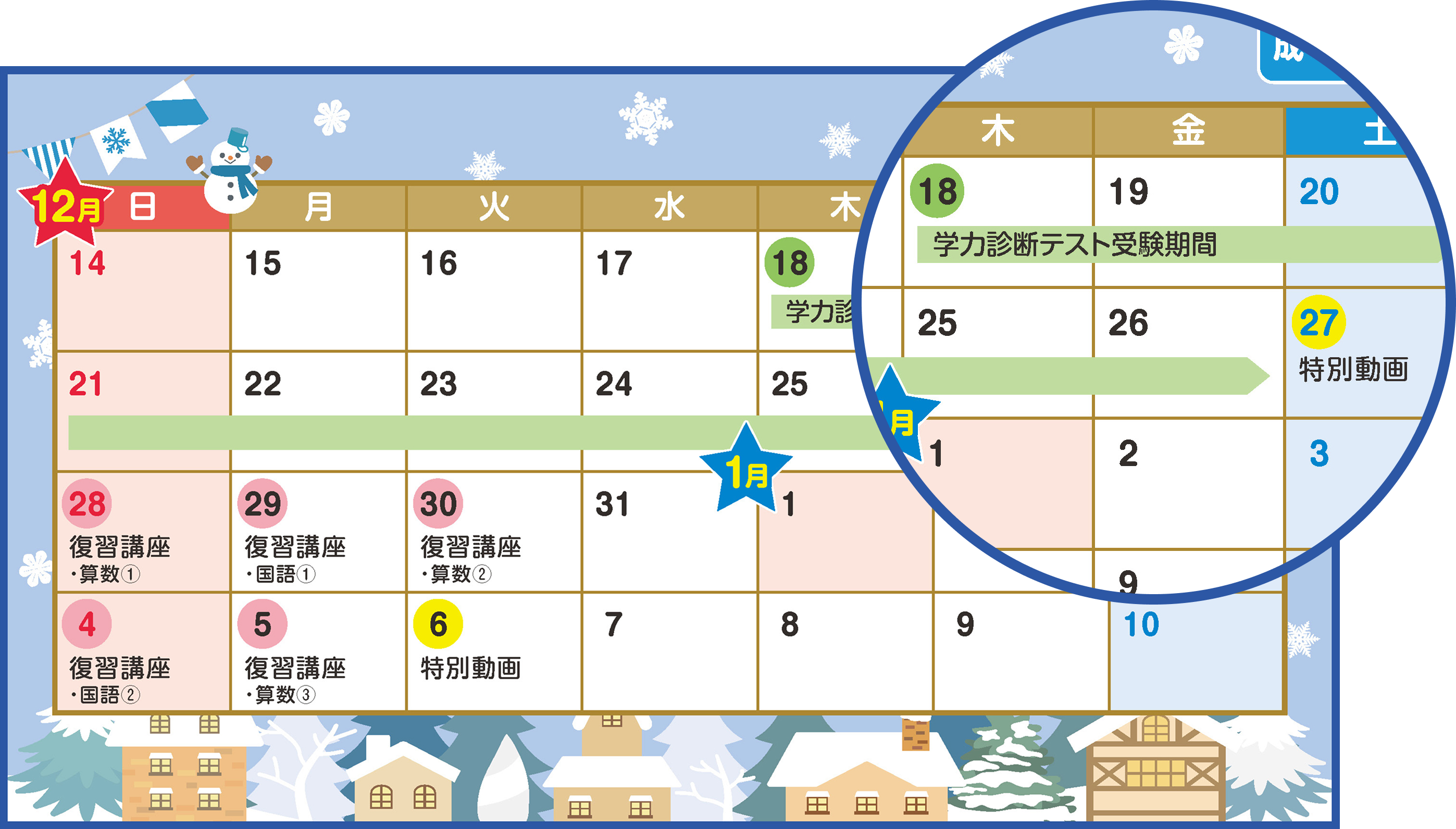 スマイルゼミの冬期講習は綿密なスケジュールが組まれていますが、予定があって受講できない時などは、受講開始日時以降であればいつでも受講できます。