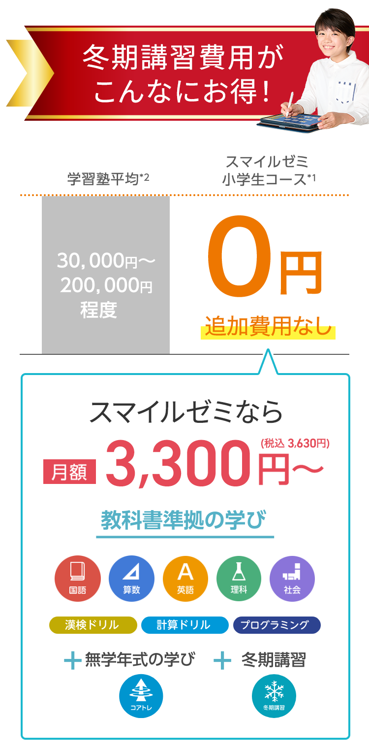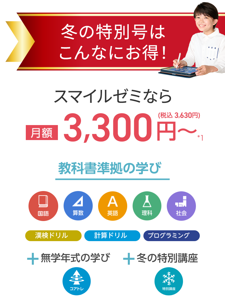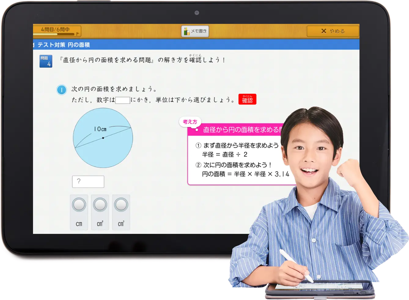 スマイルゼミは、集団授業とは違い、お子さまの苦手を集中的に復習することで対策ができます。