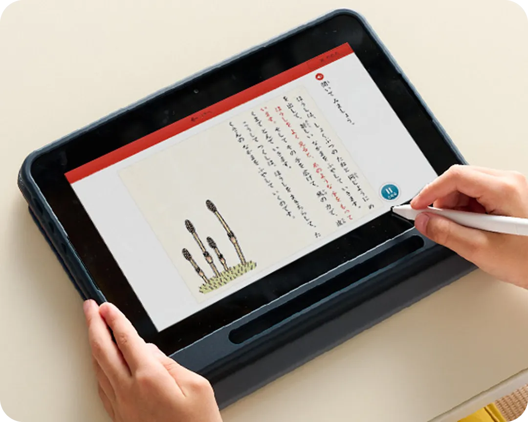 タブレット1台で全教科の全単元が学べます。 学習に特化した専用タブレットとシステムでひとりでも深く学び進めることができます。