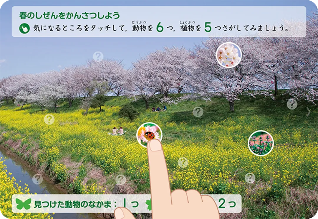 写真や動画教材で、身近な生物を観察・比較する力を養い、動植物への興味関心を育みます。