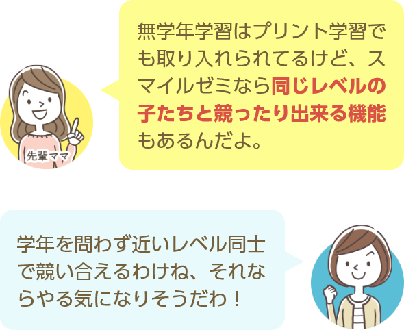 同じレベルのお子さまと競い合える仕組みや楽しく反復学習できるコンテンツなどによって、モチベーションを高め、お子さま自身が続けたくなるよう促します。