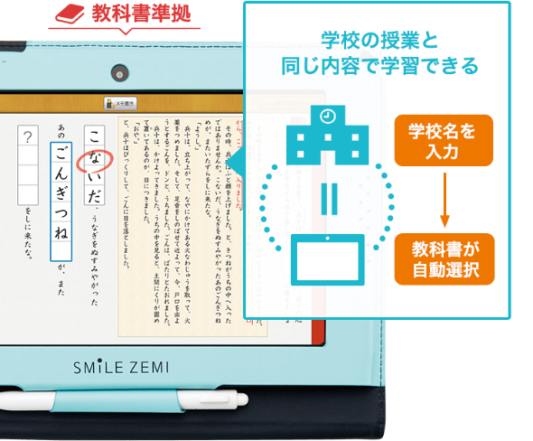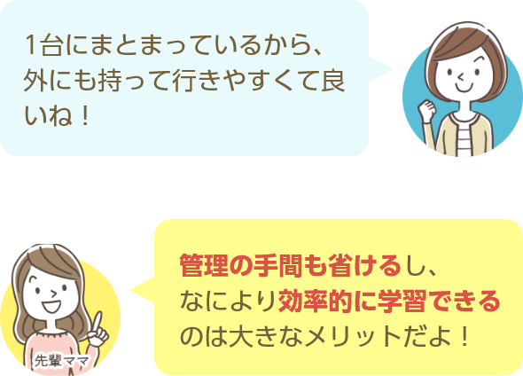 タブレットで好きな時間に好きな場所で学ぶことができます。