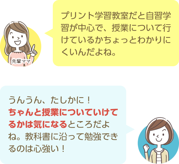 学校のペースに合わせた学習で、理解を深めながら学力を身につけます。