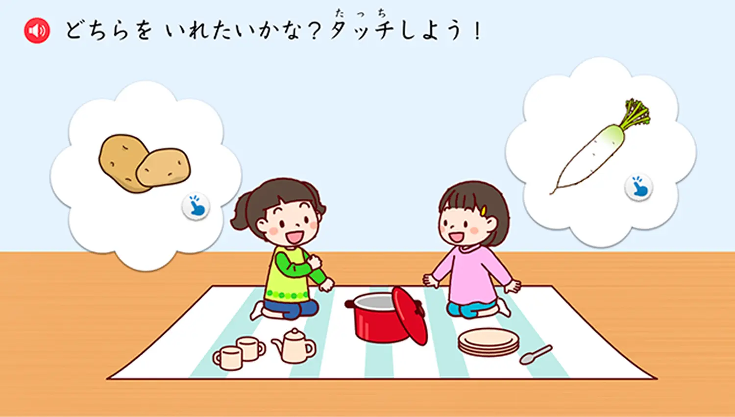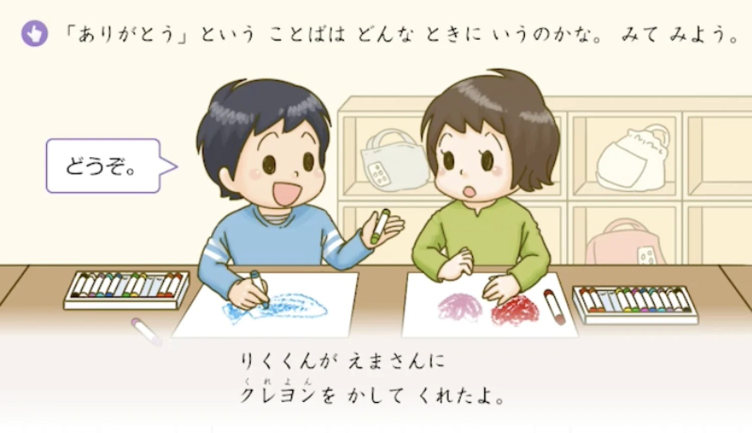 日常的なシーンを題材に、相手の気持ちを考えて行動する力を育みます。