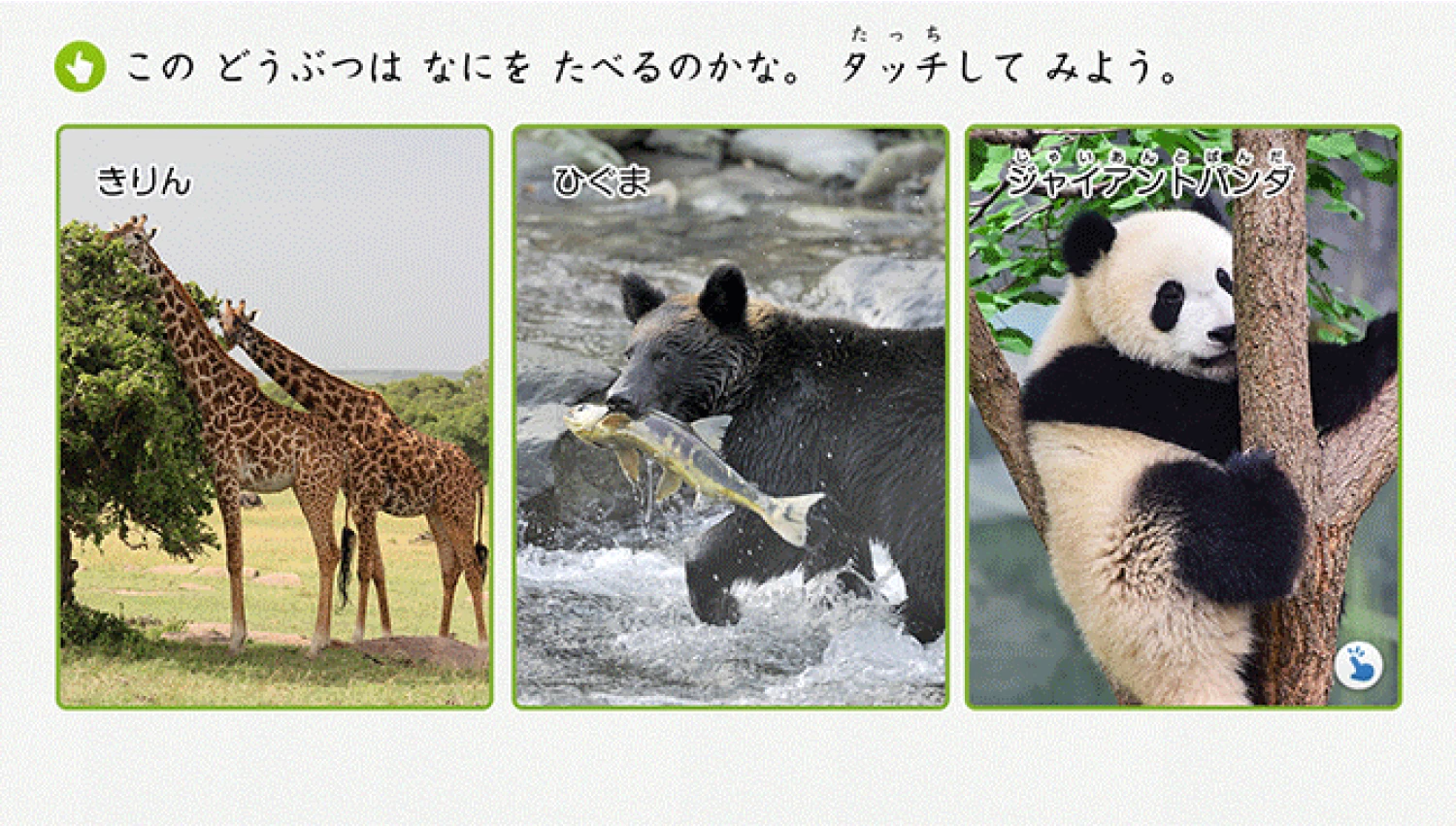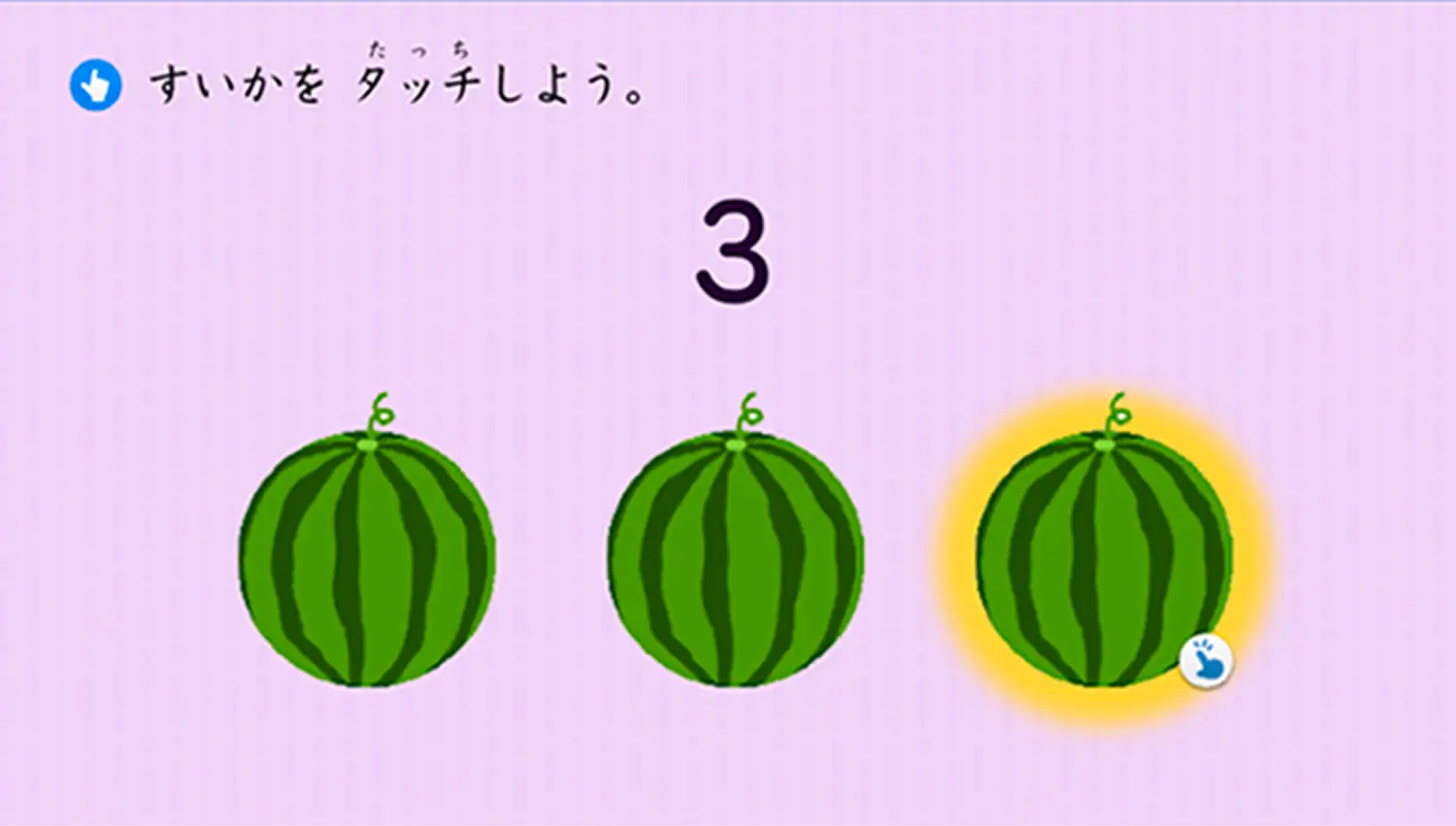 画面をタッチしながら、順番の概念と数字の読み方を身につけます。
